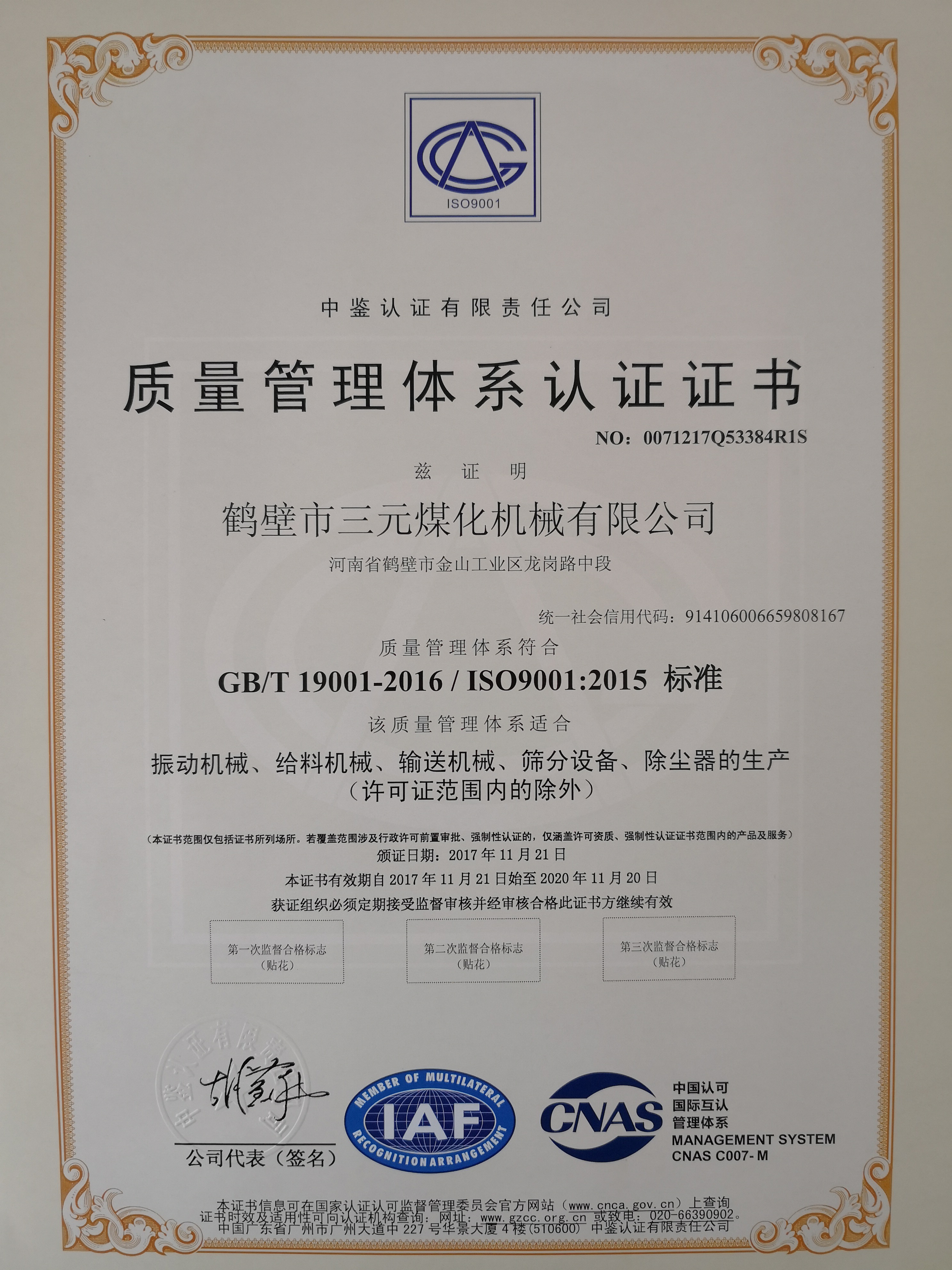 質(zhì)量管理體系認(rèn)證證書